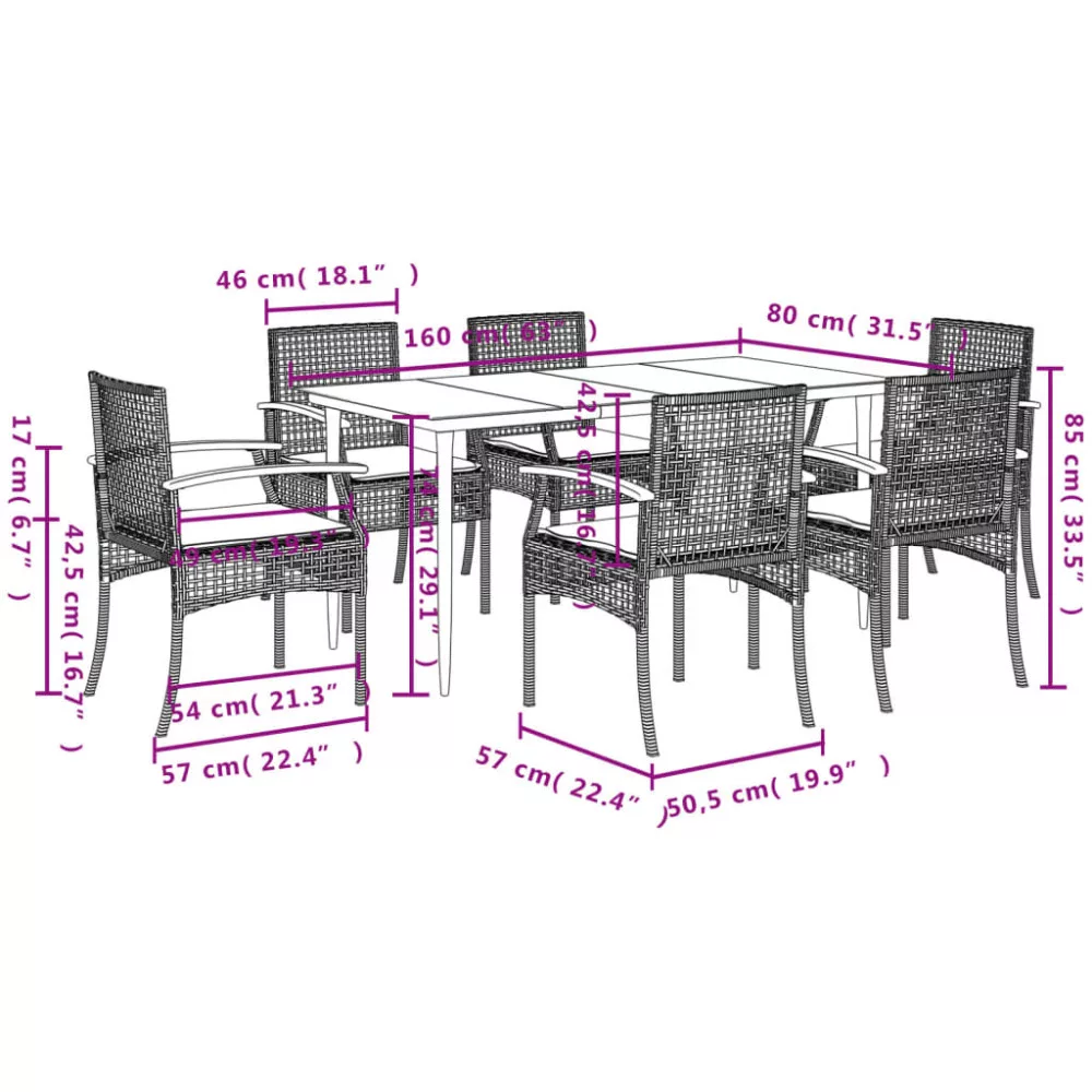 - Anyag: polietilén rattan, porszórt acél, tömör akácfa olajos felületkezeléssel