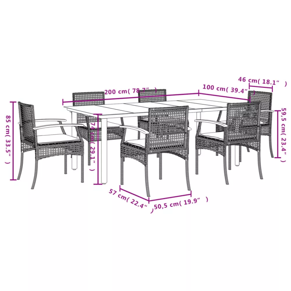 - Anyag: polietilén rattan, porszórt acél, tömör akácfa olajos felületkezeléssel