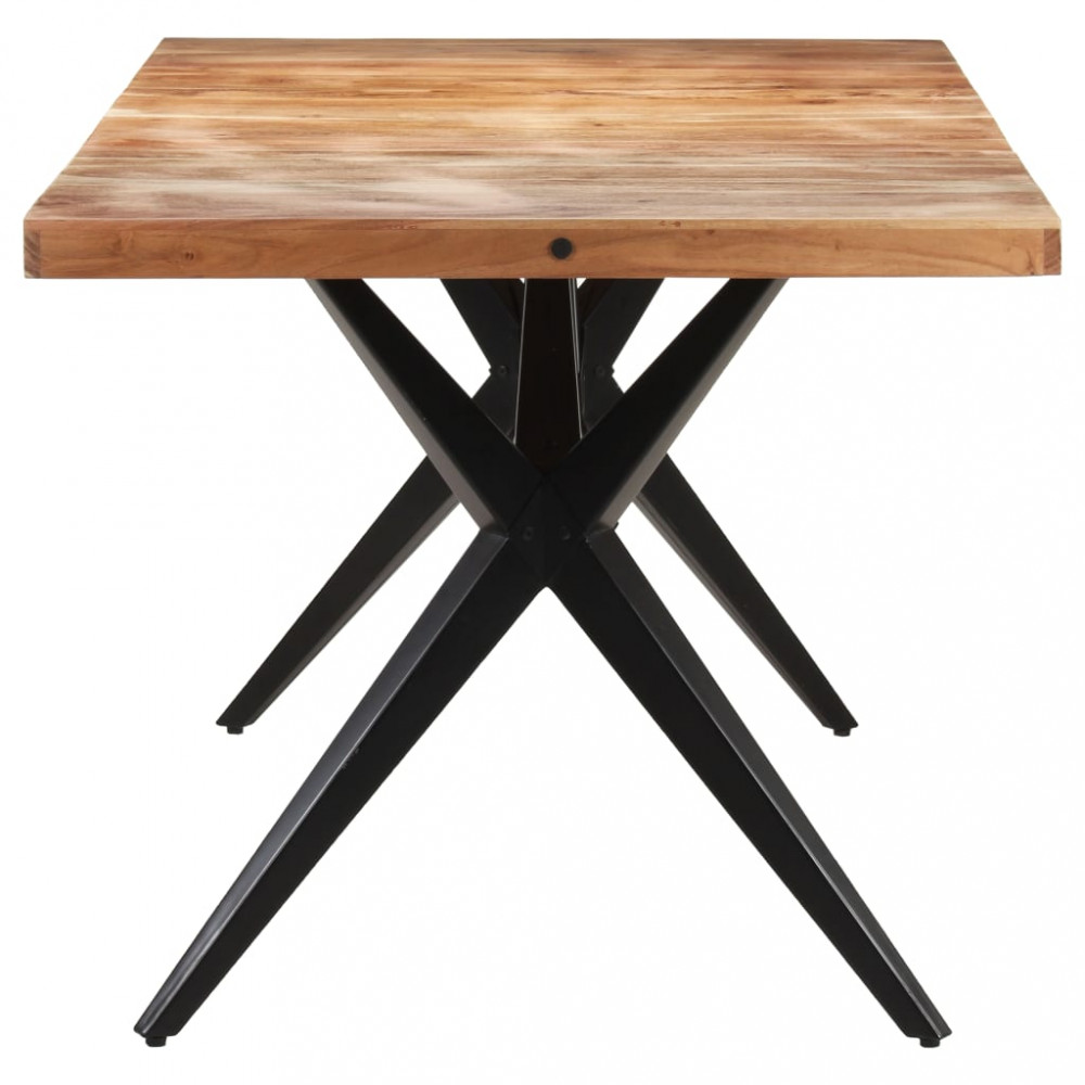 Élvezze a tökéletes étkezést családjával vagy barátaival ennél a fa étkezőasztalnál minden nap! Ez a konyhaasztal tömör akácfából, egy sűrű erezetű keményfából készült, így stabil és tartós. Az acél keresztváz és a porszórt acéllábak tovább növelik szilárdságát. A fa asztallapra ételeket, italokat vagy egyéb dísztárgyakat helyezhet. Figyelem: A szín és az erezet minden darab esetében eltérő lehet, így ezek a bútorok mind egyediek; a kiszállítás véletlenszerűen történik.