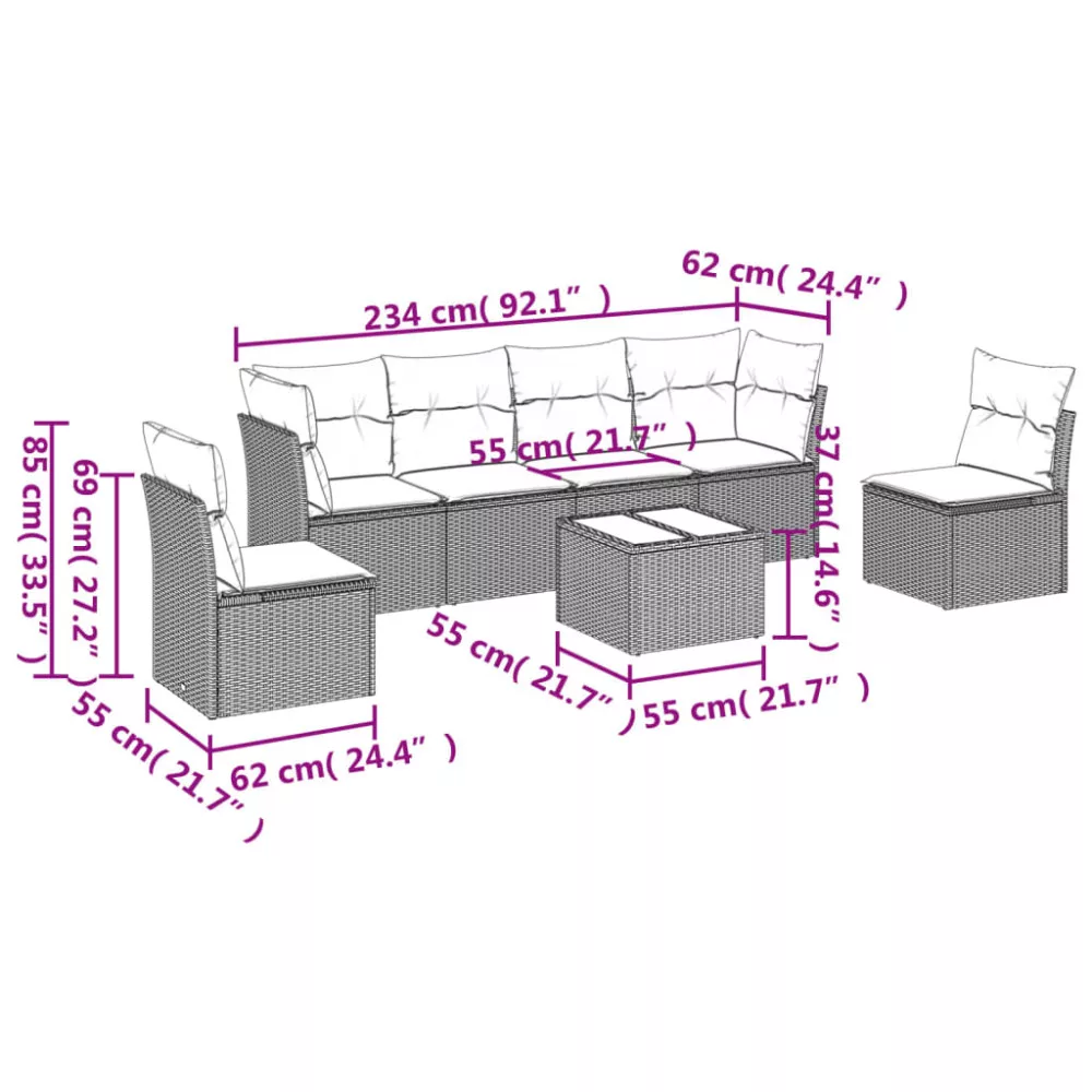 - 4 személyes kanapé teljes mérete: 234 x 62 x 69 cm (Szé x Mé x Ma)