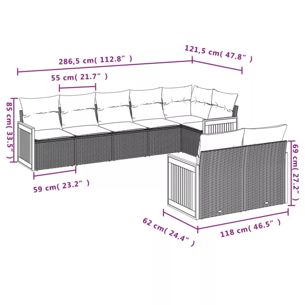 - Anyag: polietilén rattan, porszórt acél, tömör akácfa olajos felületkezeléssel