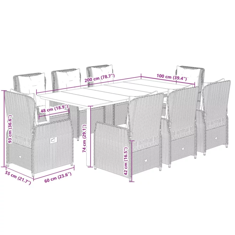 - Mérete: 200 x 100 x 74 cm (Ho x Szé x Ma)