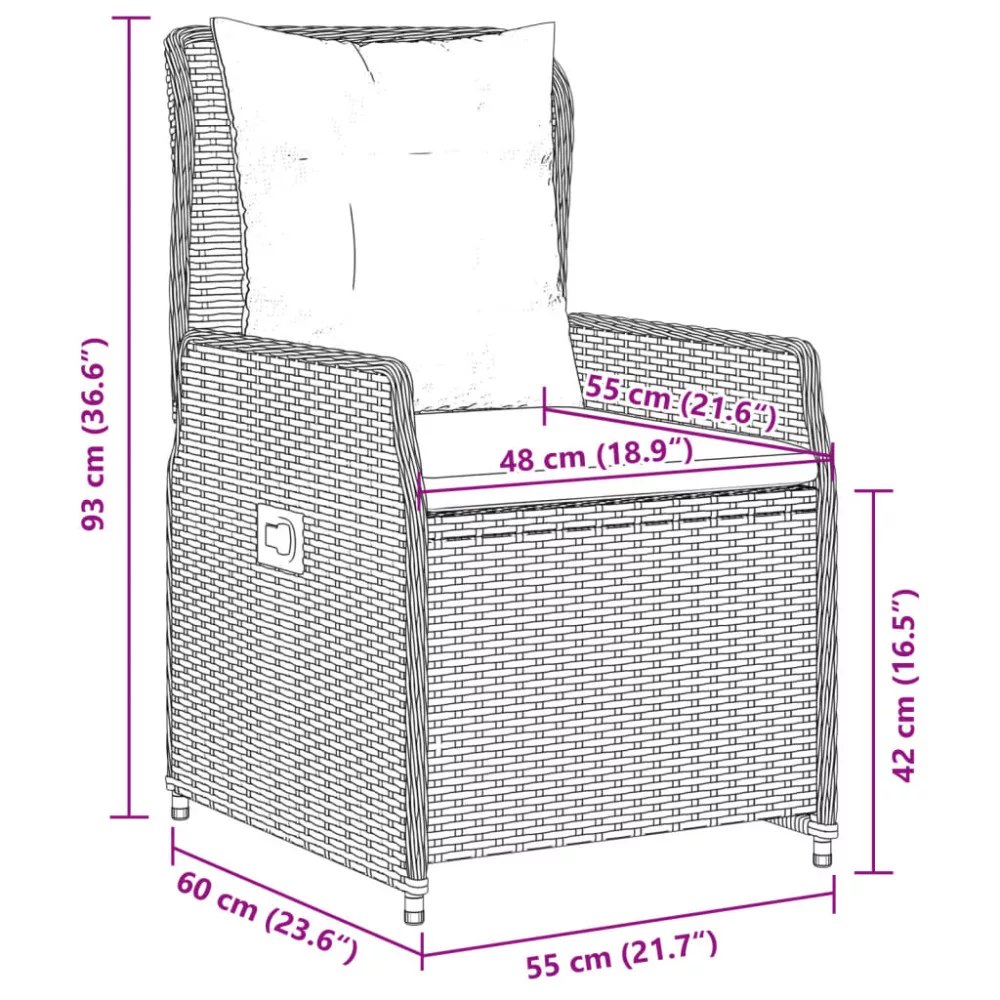 - Ülőmérete: 55 x 60 x 93 cm (Szé x Mé x Ma)