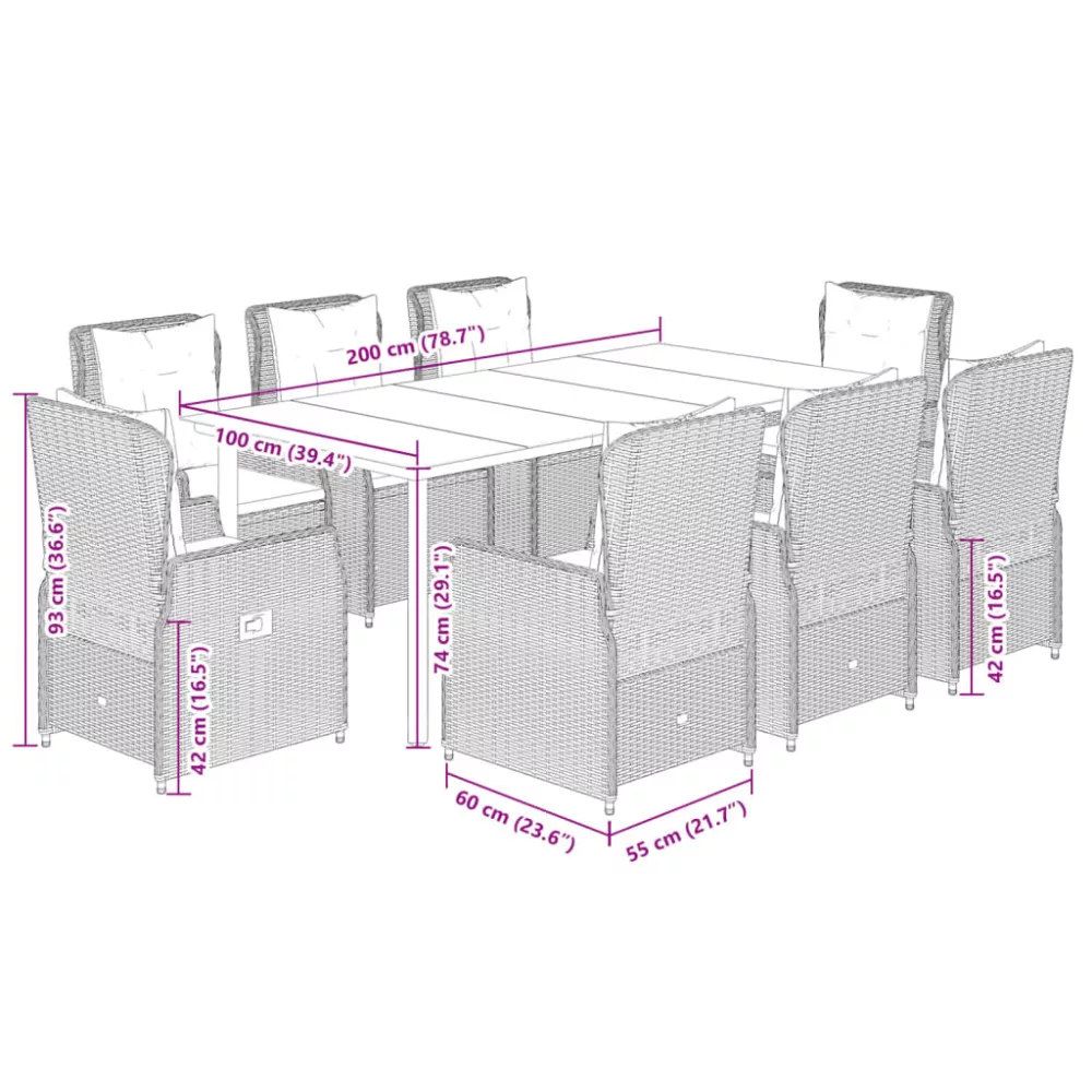- Mérete: 200 x 100 x 74 cm (Ho x Szé x Ma)