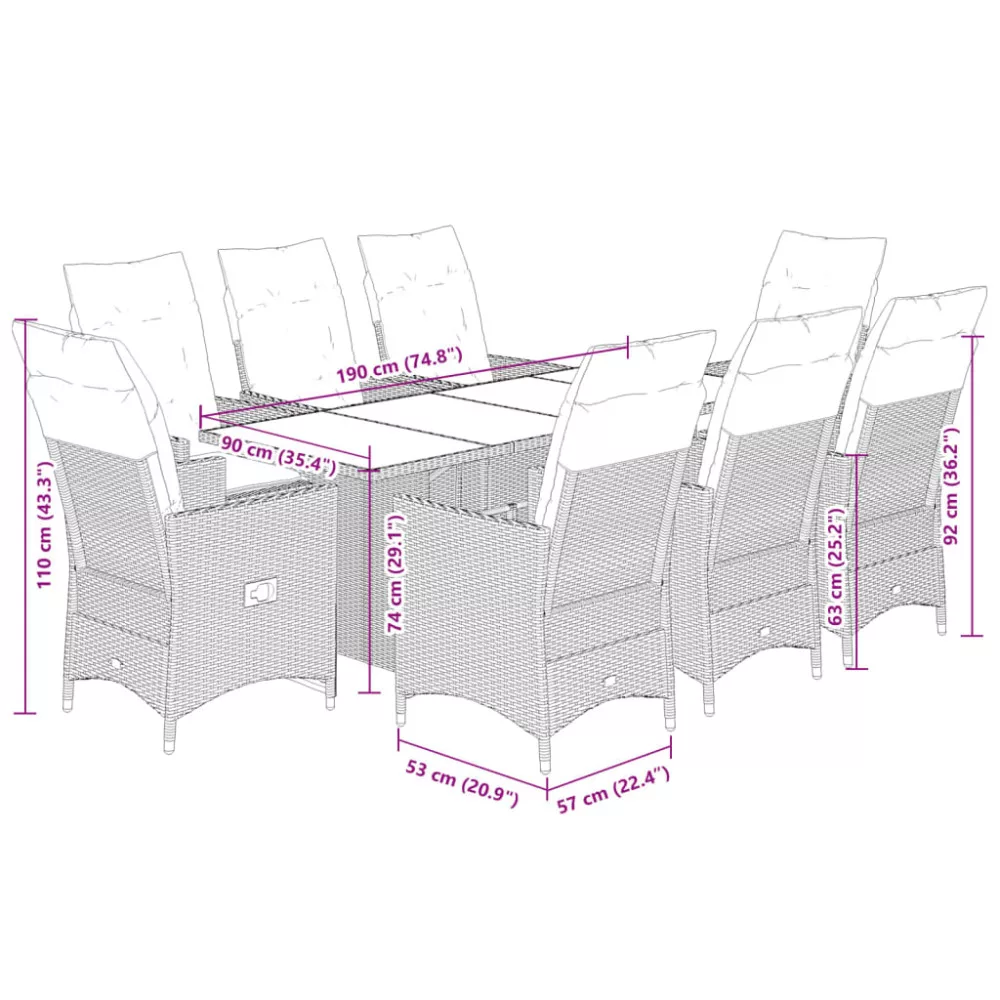 - Anyag: PE rattan, porszórt acél, edzett üveg