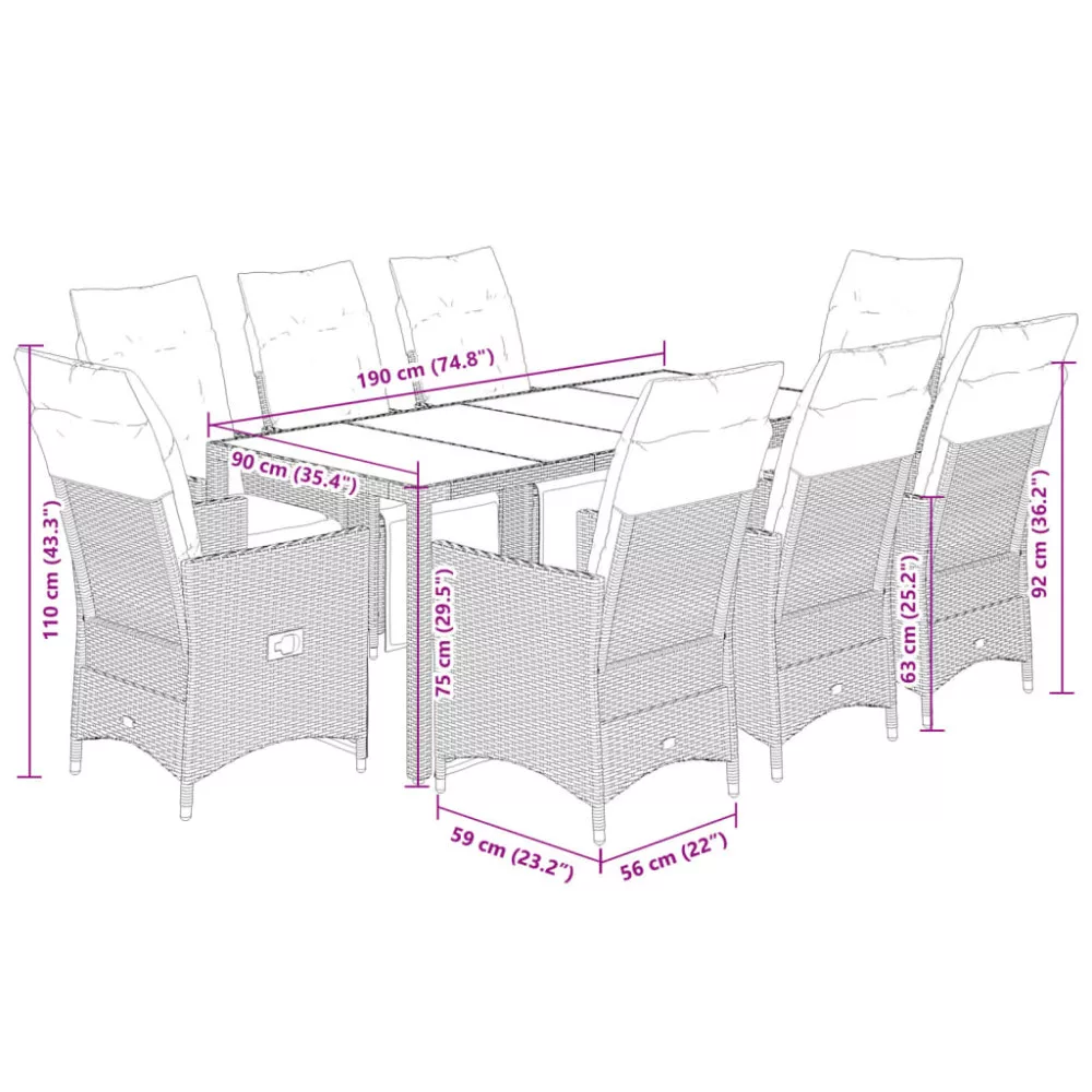 - Anyaga: polietilén rattan, porszórt acélváz, edzett üveg