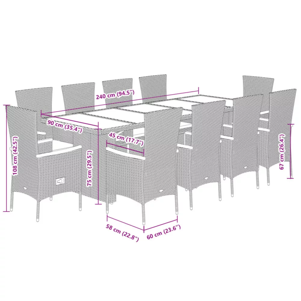 - Anyag: polietilén rattan, porszórt acél, tömör akácfa olajos felületkezeléssel