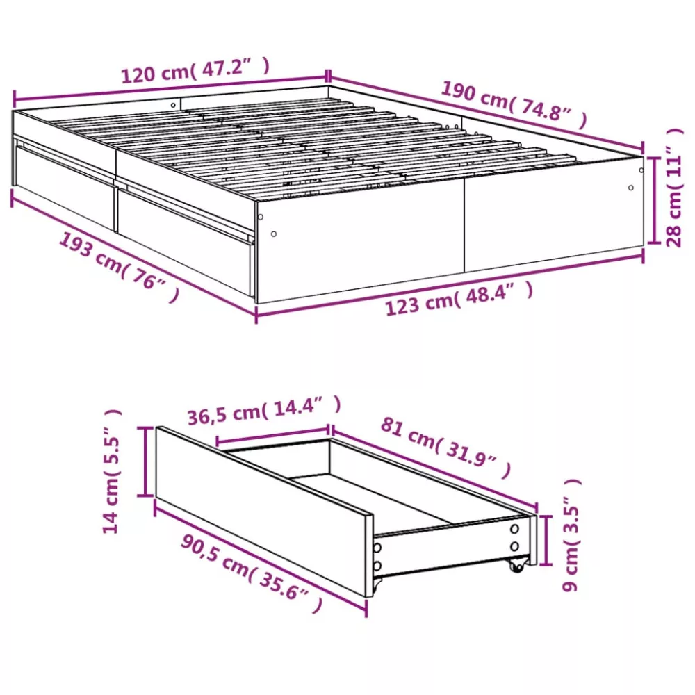 - Ágyfiók mérete (egyenként): 90,5 x 36,5 x 14 cm (Ho x Szé x Ma)