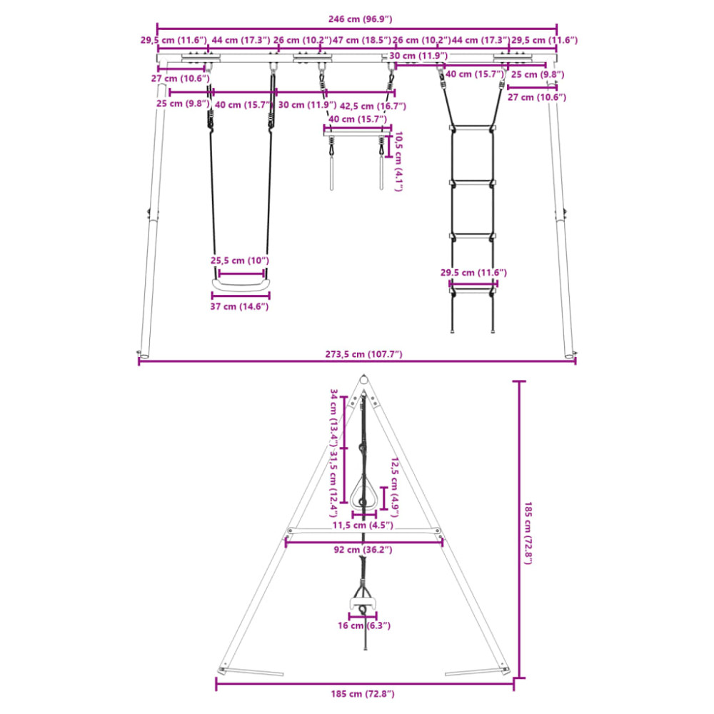 - Max. teherbírás (hintánként): 50 kg