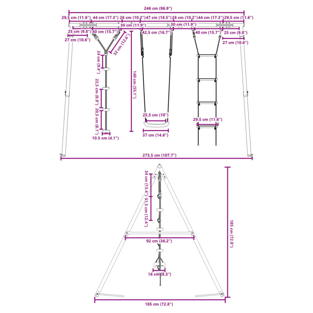 - Max. teherbírás (hintánként): 50 kg