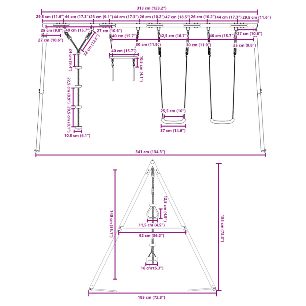 - Max. teherbírás (hintánként): 50 kg