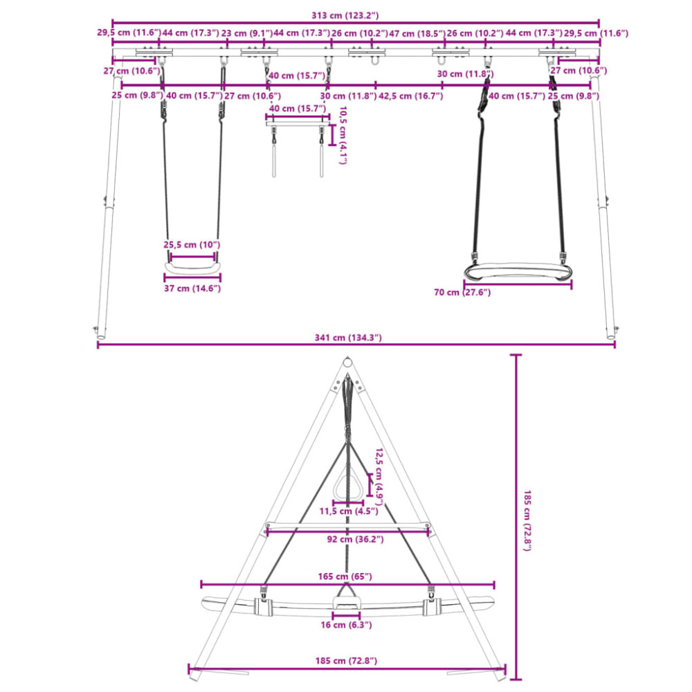 - Mérete: 341 x 185 x 185 cm (Ho x Szé x Ma)