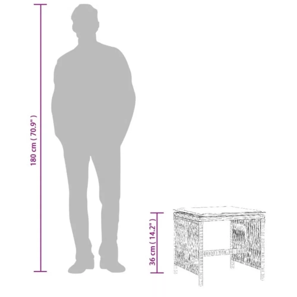 - Anyaga: polyrattan, porszórt acél