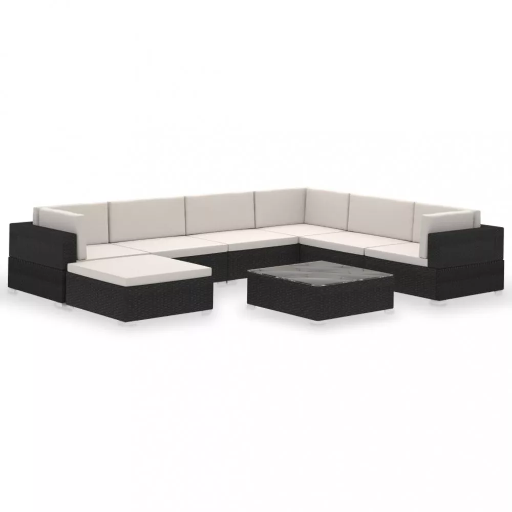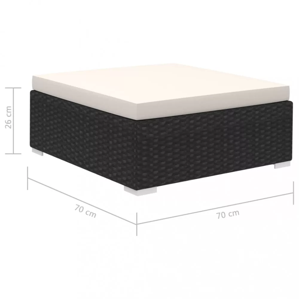 - A szett 3 db sarokülőt, 3 db karfa nélküli ülőhelyet, 1 db zsámolyt, 1 db üveglappal ellátott dohányzóasztalt, 7 db ülőpárnát és 9 db hátpárnát tartalmaz.