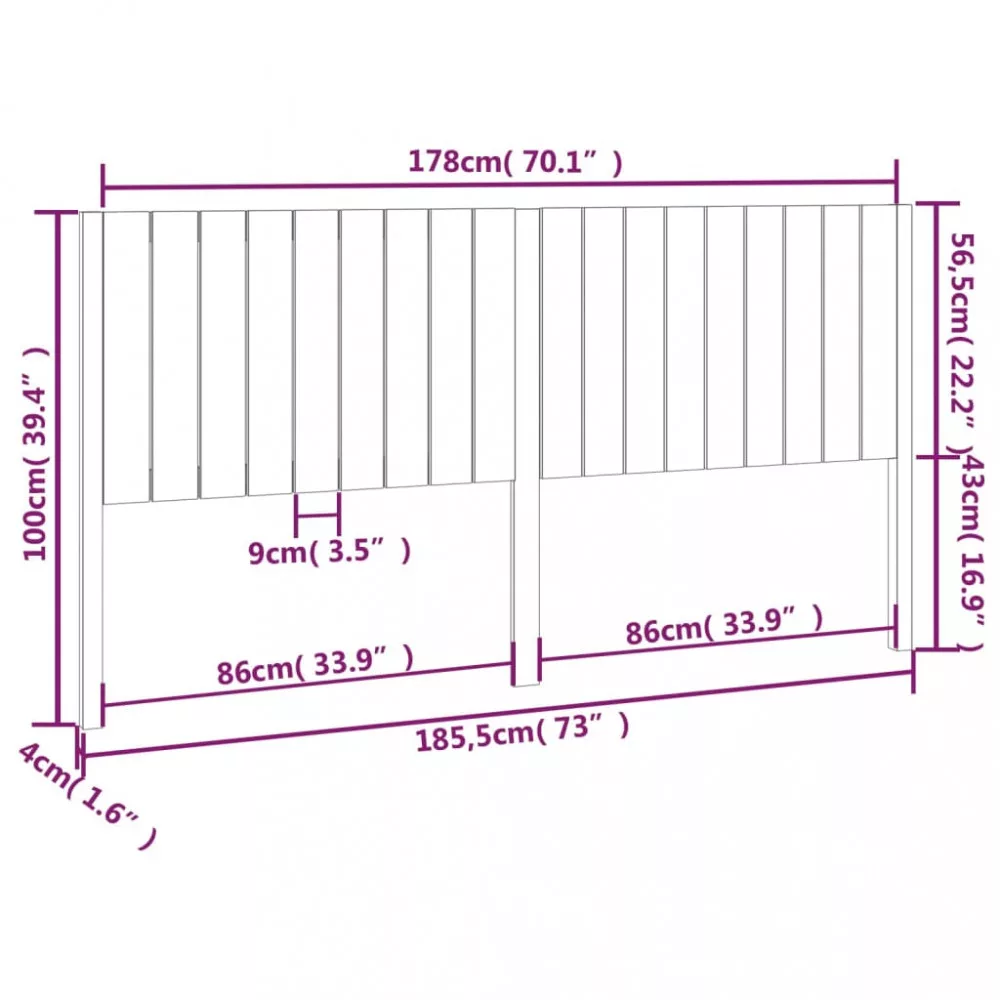 tömör fenyőfa ágyfejtámla 185,5x4x100 cm