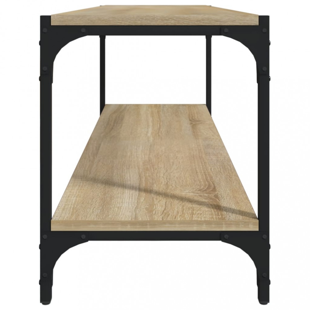 Ez a szemet gyönyörködtető TV-szekrény ipari bájt áraszt, így nagyszerű kiegészítője lesz a szoba dekorációjának. Tartós anyag: A szerelt fa kivételes minőségű, sima felületű, szilárd, stabil, és ellenáll a nedvességnek.Masszív és stabil váz: Az acél váz erős szerkezetet és stabilitást biztosít.Bőséges tárolóhely: A TV-állvány 2 polccal rendelkezik a DVD-lejátszók, játékkonzolok, streaming-eszközök és médiahordozók kézközelben történő rendezett tárolásához.Stabil és erős asztallap: A masszív lap ideális a TV és a sztereórendszer, vagy dísztárgyak, például vázák vagy cserepes növények elhelyezésére. Nappaliasztalként és tálalópolcként is használható, vagy az előszobában is elhelyezhető a cipők számára.Ipari stílus: Csempésszen bájos ipari stílust otthonába. Régi gyárak és ipari terek ihlette megjelenést visz lakóterébe. Megjegyzés:Az egyszerű összeszerelés érdekében minden termékhez mellékelünk összeszerelési útmutatót.