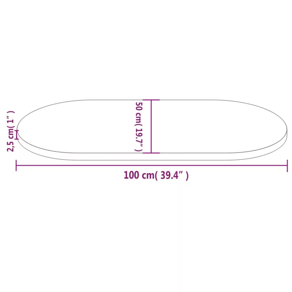 tömör fenyőfa asztallap 100 x 50 x 2,5 cm ovális