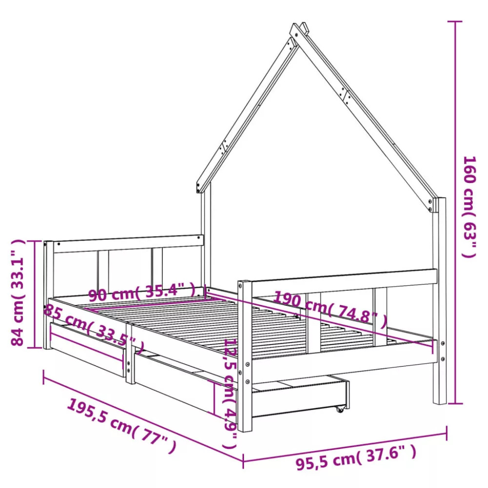 - Kompatibilis matrac mérete: 90 x 190 cm (Szé x Ho) (a matrac nincs mellékelve)