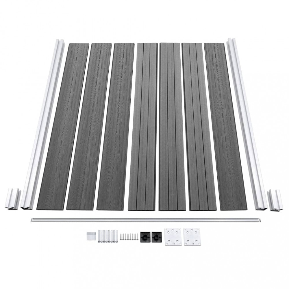 - Anyaga: WPC (fa-műanyag kompozit), alumínium, acél